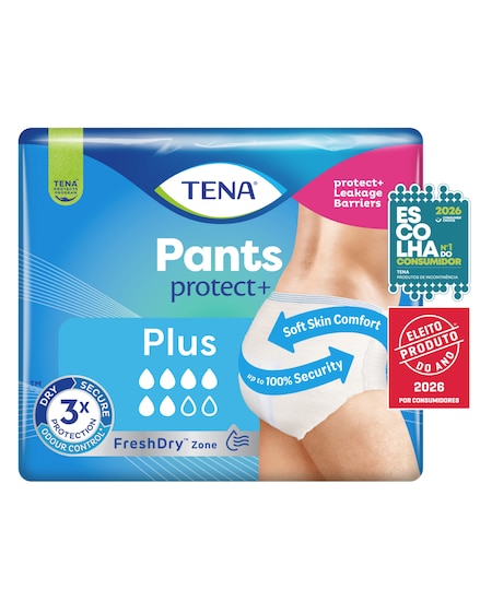 As TENA Pants protect+ são cuecas para incontinência superiores, unissexo que proporcionam até 100% de segurança contra perdas moderadas a intensas. Absorção rápida, proteção máxima, e máximo conforto asseguram um dia sem interrupções. A nossa gama de cuecas mais absorvente de sempre; são as cuecas descartáveis para incontinência de confiança para um estilo de vida quotidiano ativo, feitas para utilização diária por mulheres e homens.