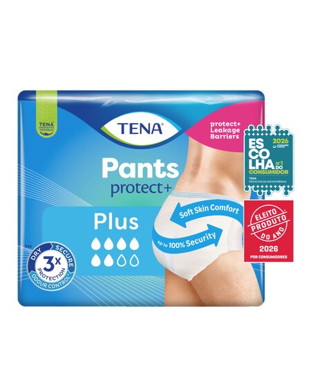 As TENA Pants protect+ são cuecas excecionais unissexo para incontinência, que proporcionam até 100% de segurança contra perdas moderadas a intensas. A rápida absorção, elevada proteção e máximo conforto asseguram um dia sem interrupções. A nossa gama de cuecas mais absorvente de sempre; são as cuecas descartáveis de confiança para incontinência para um estilo de vida quotidiano ativo, concebidas para utilização diária por mulheres e homens.